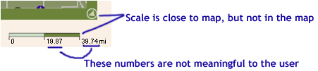 | Alternate the size of the scale, hold distance constant | Distances are not meaningful if the distance represented by the scale changes according to zoom, i.e. 2.1 to .64 miles, versus a constant distance of 1 mile. |